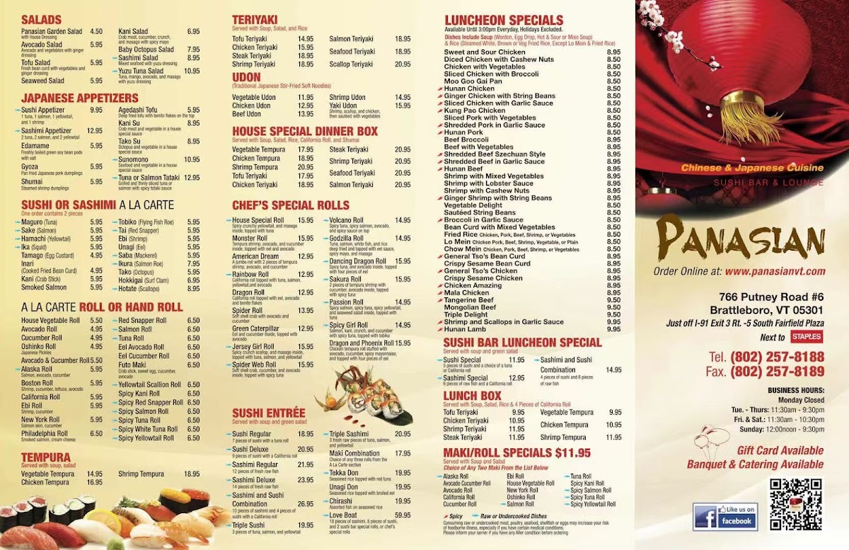 Welcome to Panasian Chinese & Japanese Restaurant, where vibrant flavors meet comforting ambiance. Located in Brattleboro, VT, this culinary gem offers a delightful fusion of Chinese and Japanese cuisine, promising an unforgettable dining experience.